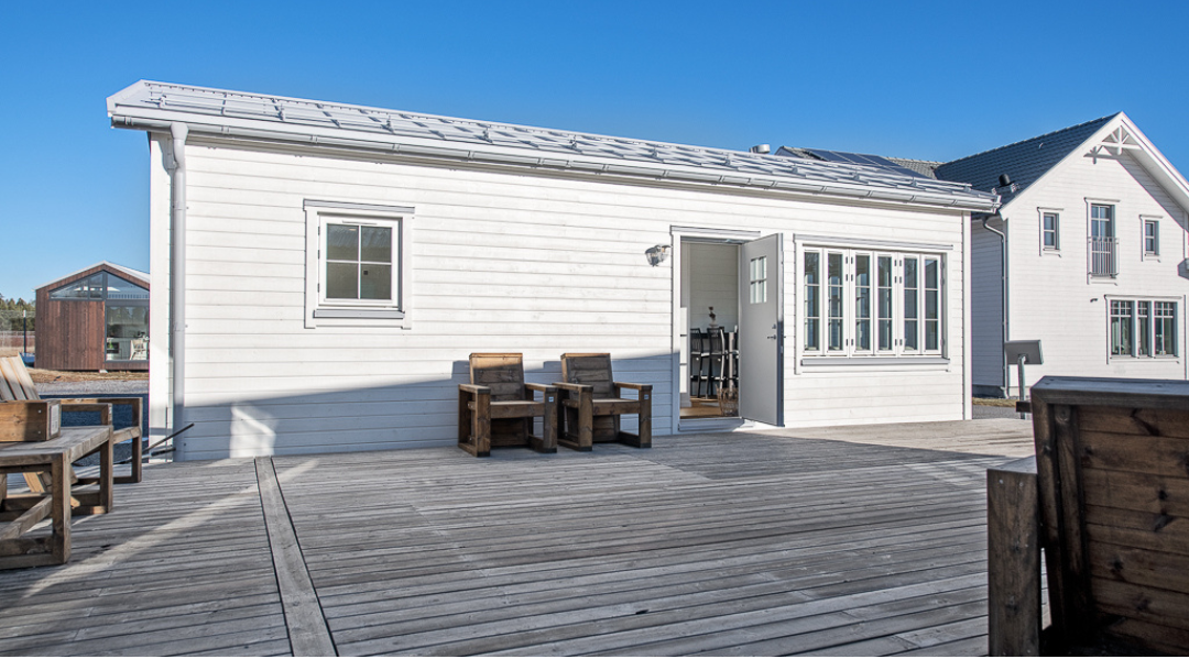 Detta fritidshus på 40 kvm är en elegant fusion av klassisk arkitektur och moderna inslag, vilket erbjuder det bästa av två världar. Den tidlösa designen hyllar traditionell charm genom sina stilrena linjer och älskade detaljer såsom fönster med spröjs, medan de moderna elementen bidrar med funktion och finess.