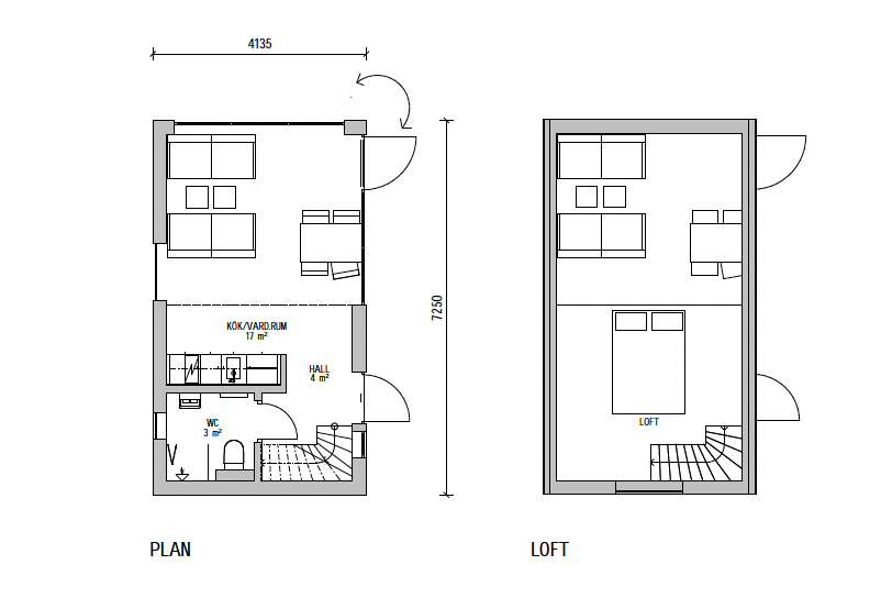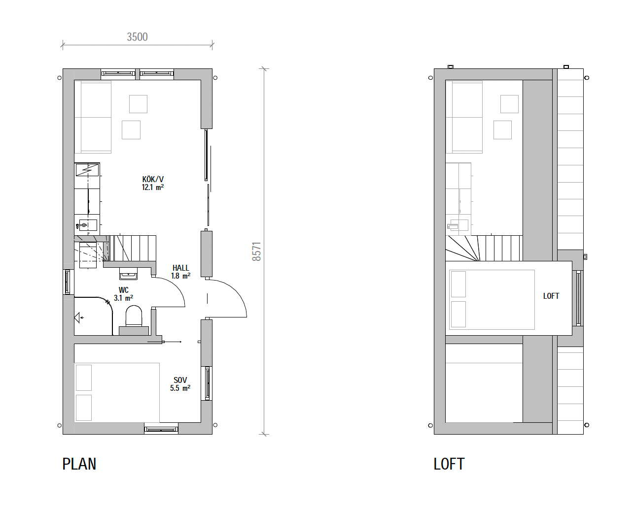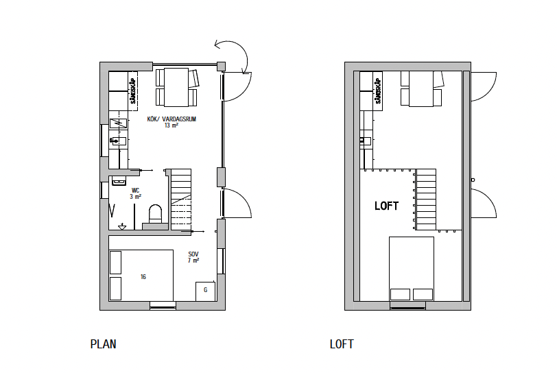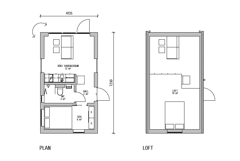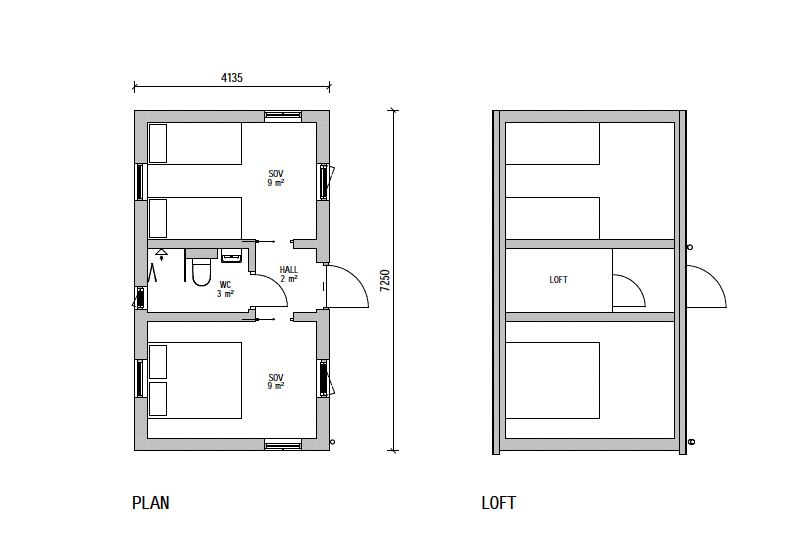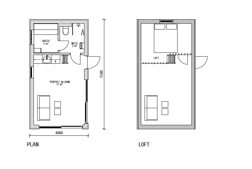 Attefallshuset HÅLLBAR erbjuder vi med ett flertal planlösningar. Vi har alltifrån kompletta hus med sovrum, kök och badrum, men även bastuhus och gäststugor med fokus på fler bäddar.