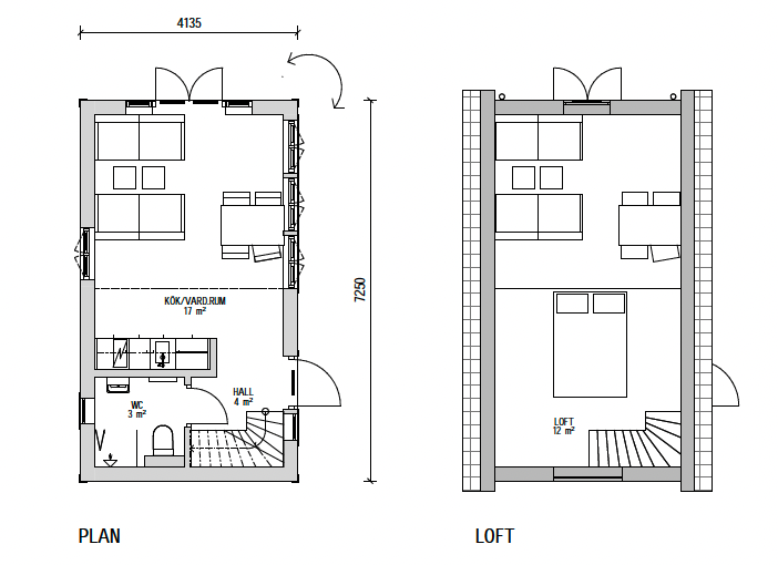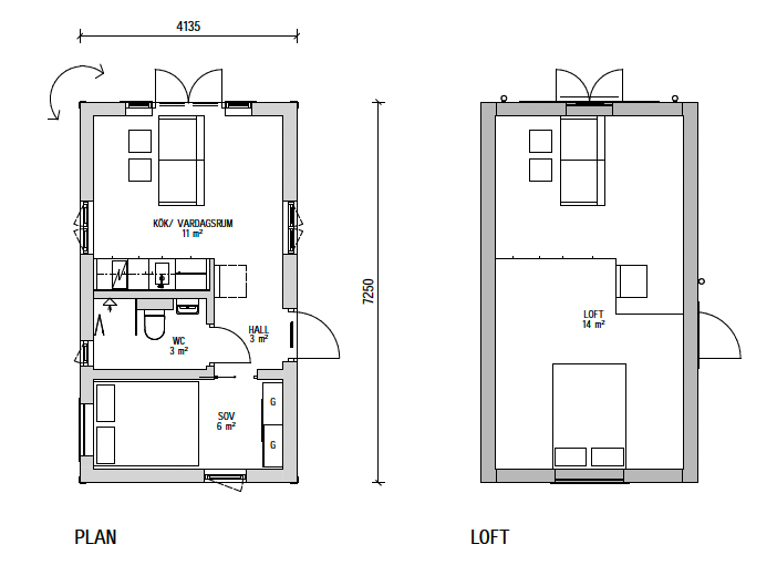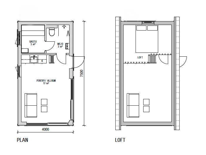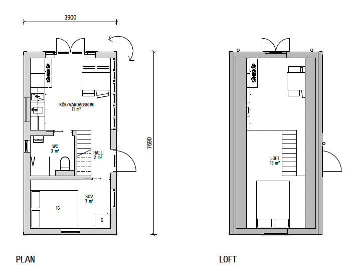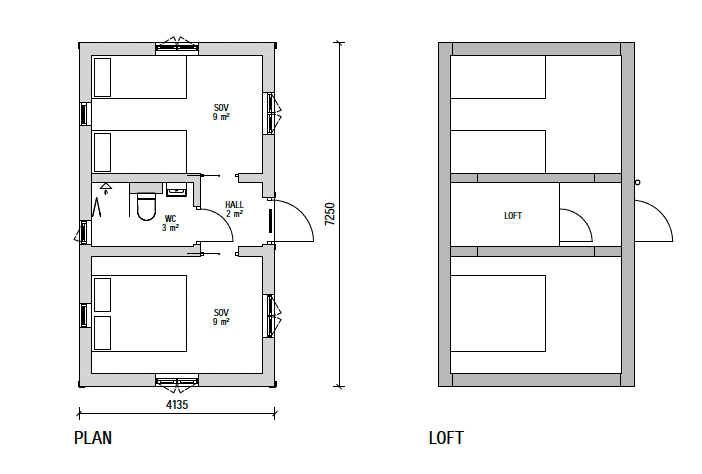 Attefallshuset KLASSISK erbjuder vi med ett flertal planlösningar. Vi har alltifrån kompletta hus med sovrum, kök och badrum, men även bastuhus och gäststugor med fokus på fler bäddar.