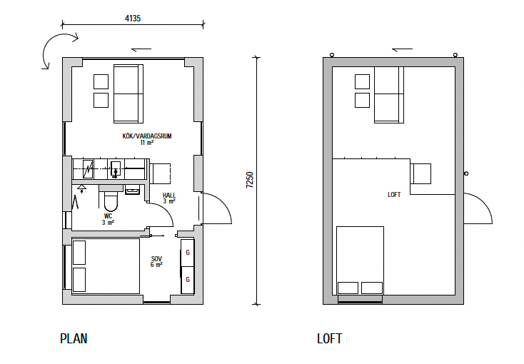 Attefallshuset Modern erbjuder vi med ett flertal planlösningar. Vi har alltifrån kompletta hus med sovrum, kök och badrum, men även bastuhus och gäststugor med fokus på fler bäddar.