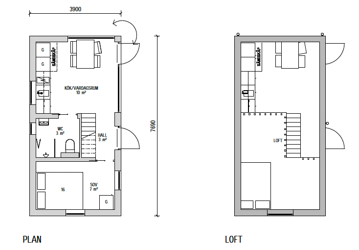 Kök: Nej Badrum: Ja Loft: Ja Sovrum: Ja