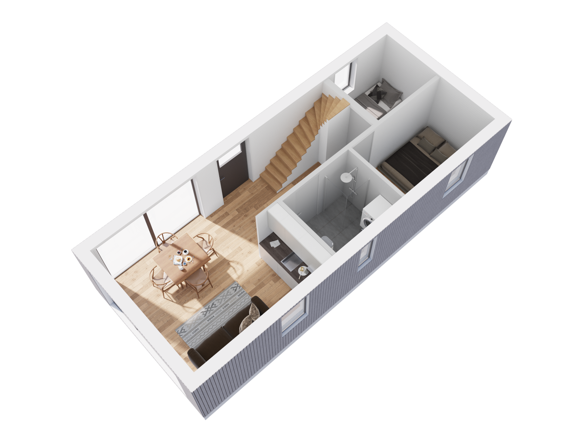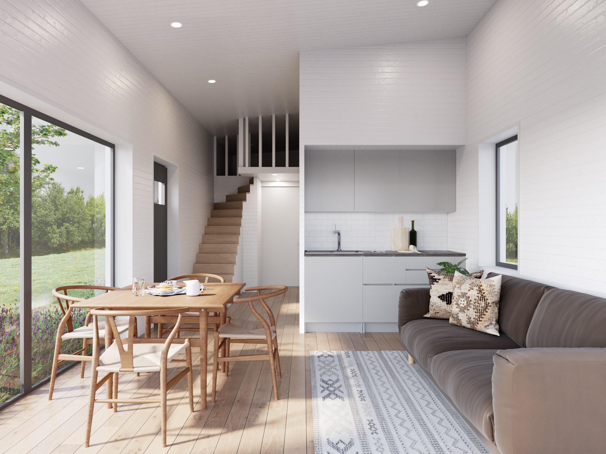 MODERN fritidshus 40 kvm, söker du lugn och ro i naturen men gillar det moderna uttrycket har vi skapat detta hus för dig. När du är i ditt fritidshus vill vi att du ska kunna slappna av och inte sakna någonting. Vi har utrustat våra fritidshus med alla bekvämligheter och skapat planlösningen för många gäster.
